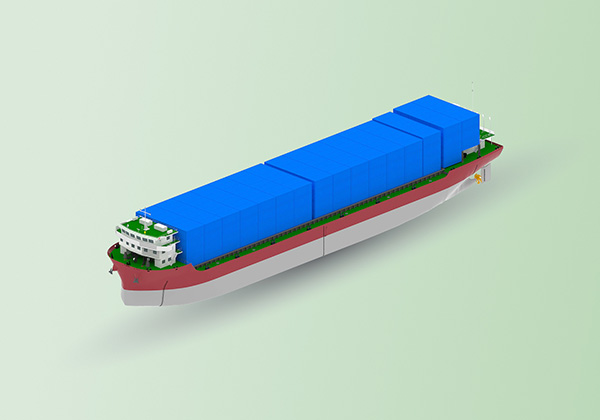 該船型設(shè)計獨具匠心,總長 119.98m,型寬 21.80m,型深 8.50m。在裝載能力方面表現(xiàn)出色,散貨裝載量可達15,000噸,標(biāo)準(zhǔn)集裝箱裝載量高達735TEU,總噸位 9500載重噸。